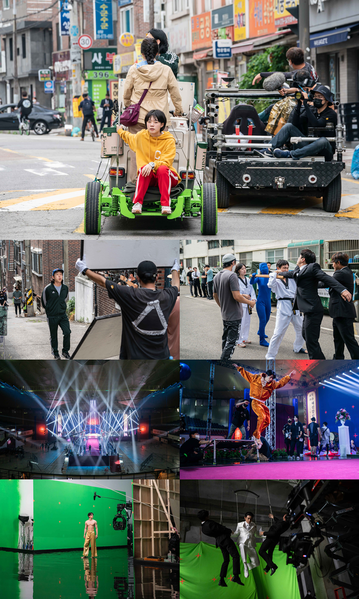 이날 공개된 스틸은 초능력 액션을 시각화하기 위한 배우들과 제작진의 노고가 고스란히 담겨 있다. 먼저 이재인은 완서의 초능력 중 하나인 빠른 스피드를 표현하기 위해 끊임없이 달리고 또 달려야 했다. 완서의 보폭이 3미터라는 설정을 바탕으로 이재인의 동작을 장소별로 약 2000배속으로 촬영한 후 VFX팀과의 긴밀한 협업이 더해져 짜릿한 언덕길 질주 신과 아찔한 카트 체이싱 장면이 탄생할 수 있었다는 후문이다.