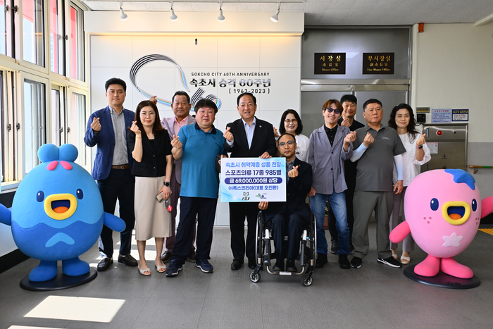 [스포츠서울ㅣ김기원기자](주)폭스코리아(대표 오진환)는 6월 17일 속초시청을 방문하여 속초시 장애인연합회에 배분될 6,900만 원 상당의 스포츠의류 총 985벌을 기탁했다.
