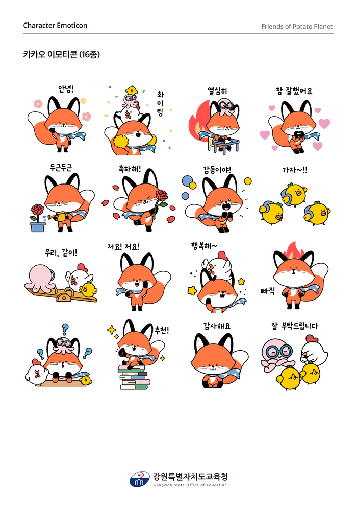 ‘감자별친구들’은 감자별 행성에서 온 캐릭터들이 강원특별자치도에 불시착해 친구들과 관계를 형성하고 성장해 가는 이야기를 담고 있다. 이들은 앞으로 강원교육 정책을 친근하고 흥미롭게 소개하는 데 활용될 예정이다.