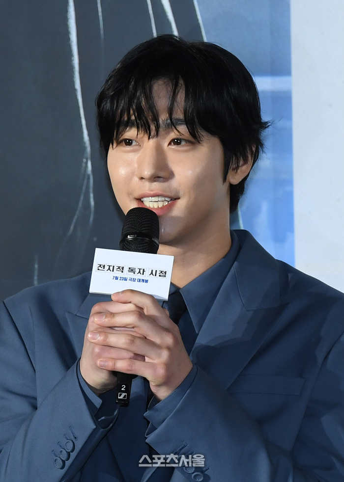 배우 안효섭이 17일 서울 광진구 롯데시네마 건대입구점에서 진행된 영화 ‘전지적 독자 시점’ 제작발표회에서 사회자의 질문에 답을 하고 있다.