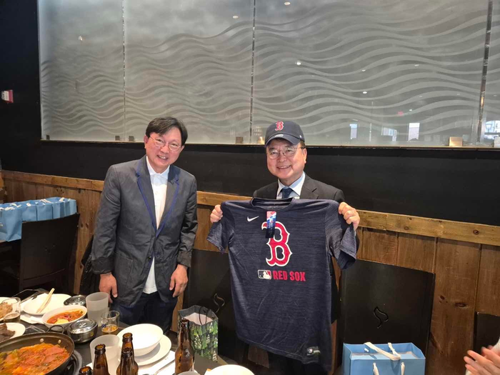 박형태 회장은 이 자리에서 육동한 시장에게 보스턴 레드삭스 야구 모자와 티셔츠를 선물하며 환영의 뜻을 전했다.