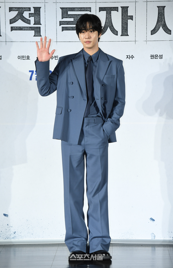배우 안효섭이 17일 서울 광진구 롯데시네마 건대입구점에서 진행된 영화 ‘전지적 독자 시점’ 제작발표회에서 취재진을 향해 포즈를 취하고 있다.