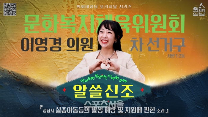 〔스포츠서울│성남=좌승훈기자〕 성남시의회는 ‘알쓸신조’ 영상으로 이영경 의원 등 13명이 발의한 ‘실종아동 등의 발생 예방 및 지원에 관한 조례’를 18일 오후 5시 시의회 공식 SNS에 게시한다.