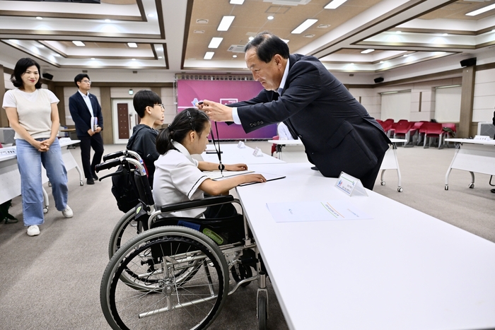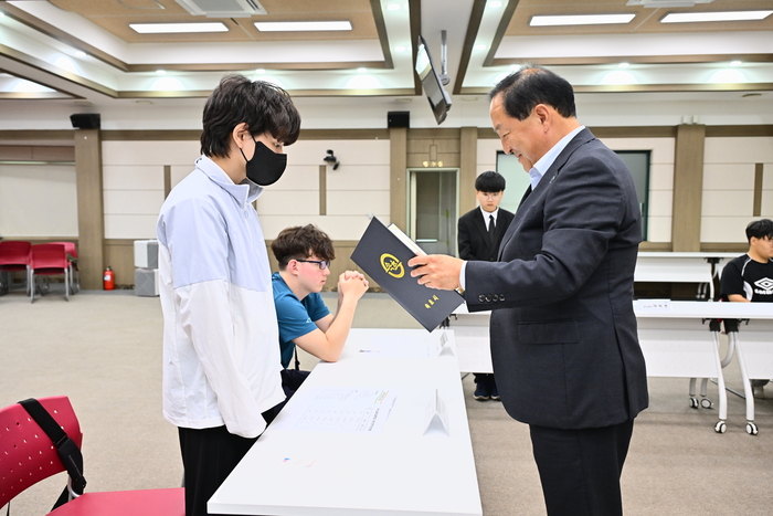 [스포츠서울ㅣ김기원기자]속초시는 6월 17일, 설악고등학교 특수학급에 재학 중인 학생들에게 1일 명예 공무원 임명장을 수여하고 공무원들의 역할에 대한 영상 시청을 통해 공무원에 대해 이해를 도왔다.