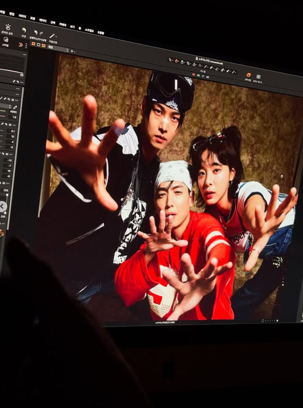 설인아는 멜빵바지에 양 갈래 머리를 하고 입술을 내민 귀여운 포즈를 취하고 있으며, 정경호는 힙합 스타일의 붉은색 상의와 두건을, 차학연은 고글과 점퍼로 멋을 낸 채 카메라를 응시하고 있다. 엘리베이터 안에서 찍은 다른 사진에서는 차학연과 함께 개구쟁이 같은 매력을 뽐내기도 했다.