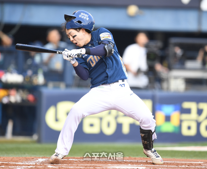 NC 박건우가 17일 서울 잠실구장에서 열린 2025 KBO리그 LG와 경기 2회초 무사1루 상대 투수 에르난데스의 투구에 머리를 맞은 후 쓰러지고 있다.