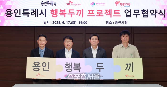 〔스포츠서울│용인=좌승훈기자〕경기 용인시는 지역내 결식이 우려되는 아동을 지원하기 위해 ㈜SK에코플랜트, ㈜행복나래, 행복도시락 사회적협동조합과 ‘ 행복두끼 프로젝트’ 업무협약을 체결했다고 18일 밝혔다.