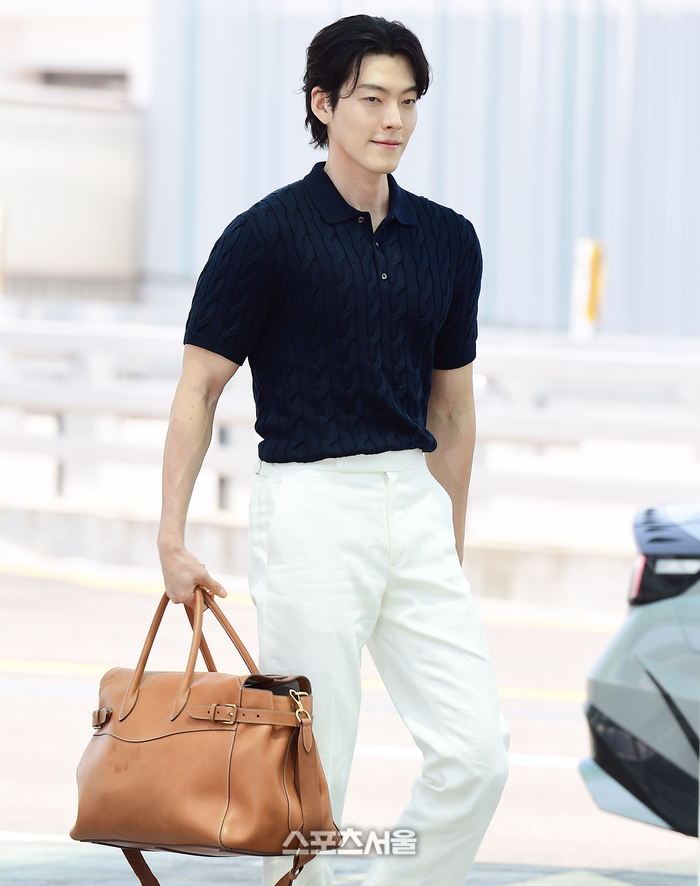김우빈은 출국장에서 이탤리언 특유의 클랙식한 감성의 세련되고 우아한 패션을 선보이며 댄디함을 뽐냈다. 깔끔한 화이트 슬랙스와 짙은 네이비 니트 폴로셔츠가 우월한 기럭지와 핏을 이루며 심플하면서 고급스러움을 뽐냈다. 특히 브라운 로퍼와 브라운 보스턴백은 여행을 연상시키는 아이템이어서 김우빈 특유의 시원함과 청량감을 배가시켰다. 이날 김우빈이 착용한 의상은 모두 ‘랄프 로렌 퍼플 라벨’ 제품으로 올여름 패션을 예고했다.