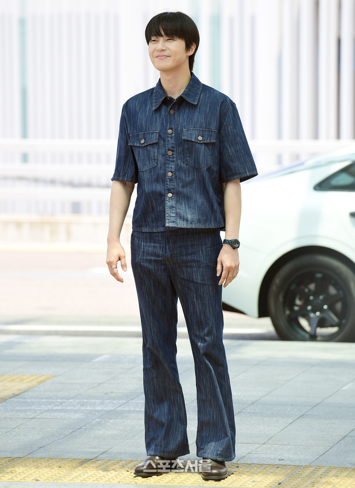 이날 박서준은 짙은 워싱의 데님 셋업으로, 흔히 ‘청청패션’이라고 불리는 스타일을 뽐냈다. 박서준이 보여준 모습은 복고적이면서도 캐주얼한 매력을 동시에 지니고 있었다. 반팔 데님 셔츠는 넉넉한 핏으로 편안해 보이는 효과를, 가슴 부분의 포켓 디테일은 실용적인 느낌을 선사했다. 하의는 부츠컷의 데님 팬츠로, 다리가 길어 보이는 효과를 주는 동시에 셔츠와 통일감을 이루어 안정적인 스타일을 완성시켰다.