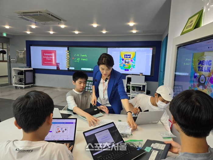 ‘와이업 스쿨(Why up School) 프로그램’은 도교육청의 ‘하이러닝’과 교육부 ‘인공지능(AI)펭톡’을 활용한 영어 수업이다.