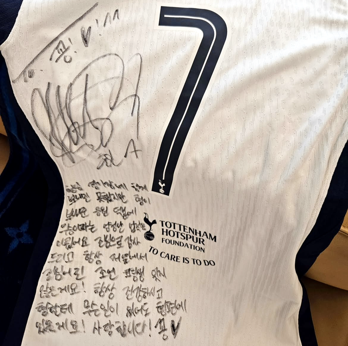한 손흥민은 자신의 등번호가 적힌 유니폼에 “형이 보내준 응원 덕분에 우승이라는 엄청난 업적을 이뤘다”며 “진심으로 감사드리고 항상 제 옆에서 진심 어린 조언 평생 잊지 않겠다”고 감사의 인사를 전하고 있다. 또한 손흥민은 “항상 건강하시고 형한테 무슨 일이 있어도 형 편에 있을게요. 사랑합니다! 꽁”라며 공유를 부르는 애칭과 함께 애정 넘치는 메시지를 남겼다.