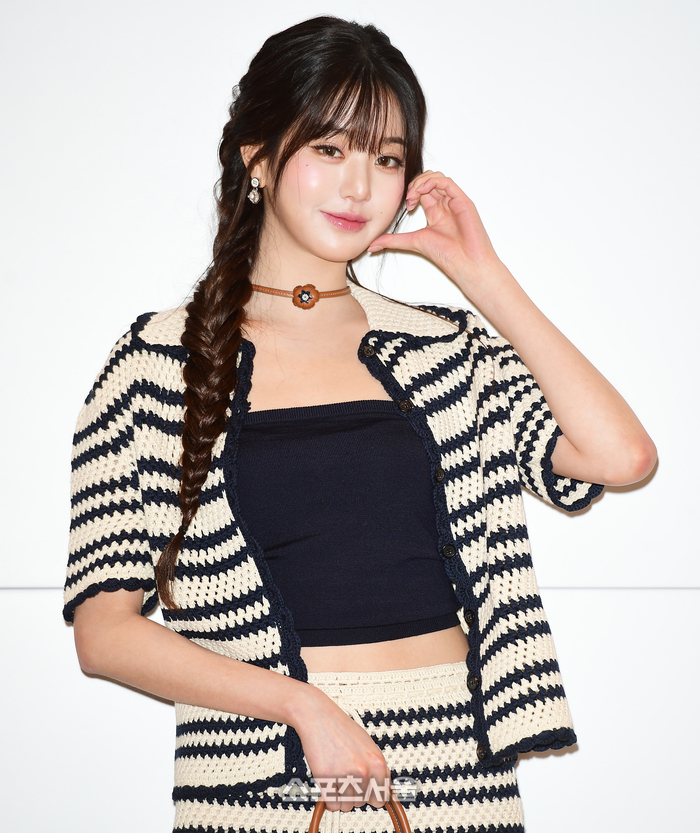 아울러 귀엽게 땋은 머리와 미니 백 그리고 반짝거리는 립은 장원영의 표현을 매력적으로 하는 데 일조했다.