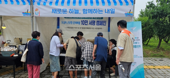 〔스포츠서울│수원=좌승훈기자〕수원 군 공항 이전 및 경기통합국제공항 시민협의회는 21일 열린 ‘2025 새빛세일페스타’ 행사장에서 군 공항 이전을 촉구하는 10만 서명운동 홍보 부스를 운영하며 시민들과 적극적으로 소통했다.