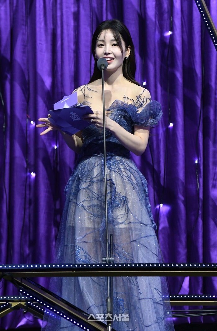 배우 남규리가 21일 오후 인천 중구 인스파이어 아레나에서 열린 제34회 ‘서울가요대상’에서 베스트 그룹상 수상자를 발표하고 있다. 2025. 6. 21.