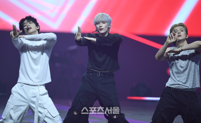 투모로우바이투게더 수빈, 휴닝카이, 연준이 21일 인천 인스파이어 아레나에서 열린 제34회 서울가요대상에서 공연을 하고 있다.