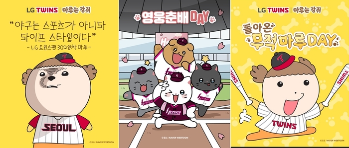 ‘마루’와 LG 협업 상품은 26일 오후 3시부터 LG 공식 온라인몰 ‘콜랩샵’에서 판매를 시작한다. 27~29일 잠실구장에서 열리는 KIA 타이거즈와의 경기는 ‘돌아온 무적 마루 데이’로 진행, 이날 캐릭터 시구와 포토존, 팝업 스토어 등 현장 이벤트도 펼쳐진다.