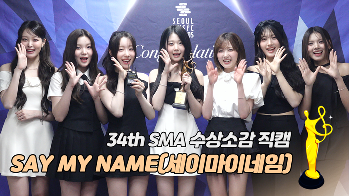 그룹 SAY MY NAME(세이마이네임)가 ‘올해의 발견상’ 수상 후 소감을 전하고 있다.