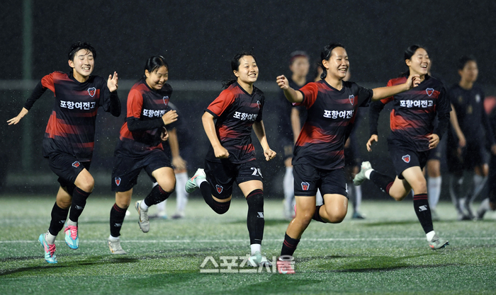 경북 포항여전고 선수들이 24일 경남 합천에서 열린 ‘2025 스포츠케이션 명품도시 합천에서 펼쳐지는 제33회 여왕기 전국여자축구대회’ 고등부 충북 예성여고와의 8강전에서 승부차기 끝에 승리를 거두면서 기뻐하고 있다. 2025. 6. 23.