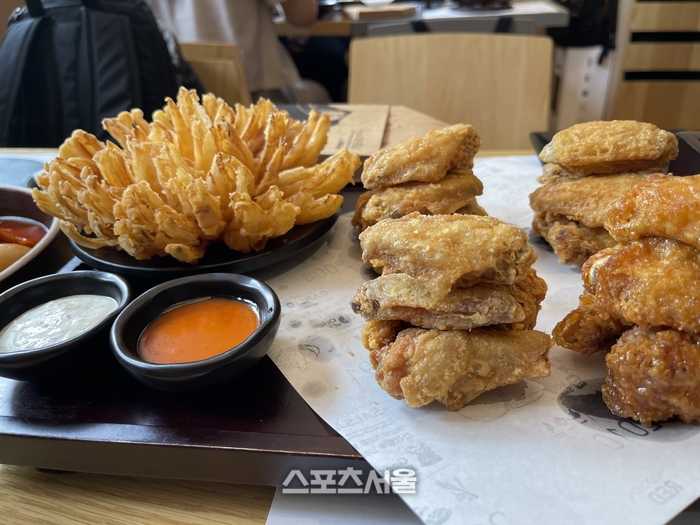 1호점의 숨은 병기는 이곳에만 파는 ‘교촌 구미 플래터’다. 소스통을 접시에 부어 치킨마다 다른 소스를 붓으로 발라 먹을 수 있게 했다. 꽃이 피듯 활짝 벌어진 양파는 기름에 튀겨 아삭아삭 씹히는 맛을 더했다. 떡볶이도 남다르다. 까맣게 그을린 건 가래떡이다. 이름은 ‘꾸븐 떡볶이’로 붙였다. 구웠다는 경상도 사투리다.