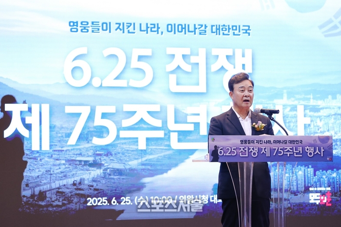 〔스포츠서울│의왕=좌승훈기자〕김성제 의왕시장은 25일 시청 대회의실서 열린 6.25 전쟁 제75주년 행사에서 “국가를 위해 헌신한 분들이 존경받는 사회 분위기 조성을 위해 참전유공자 예우와 보훈 정책을 지속적으로 강화해 나가겠다”고 말했다.