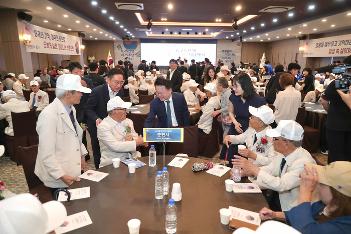육동한 춘천시장은 참전용사들과 인사를 나누고 감사말씀을 통해 “춘천대첩은 민·관·군이 하나 되어 지켜낸 자유의 승리였다”며 “올해 4월 건립한 6·25 참전유공자 기념탑에 새겨진 3,286분의 이름처럼 그분들의 용기와 헌신을 끝까지 기억하겠다”고 말했다.