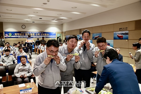 시식회에 이어 이달 30일에는 첫 수확 수박 600개를 농가에서 출하해 무더위 속에서 일하는 조선기업 직원들에게 간식으로 제공할 예정이다.