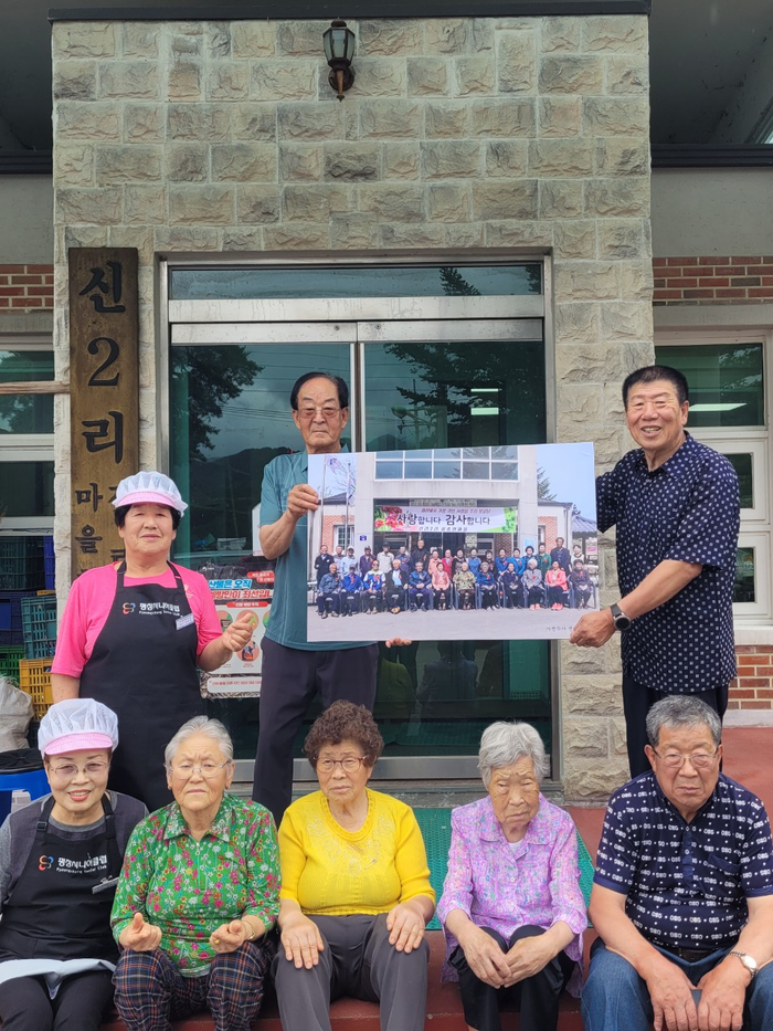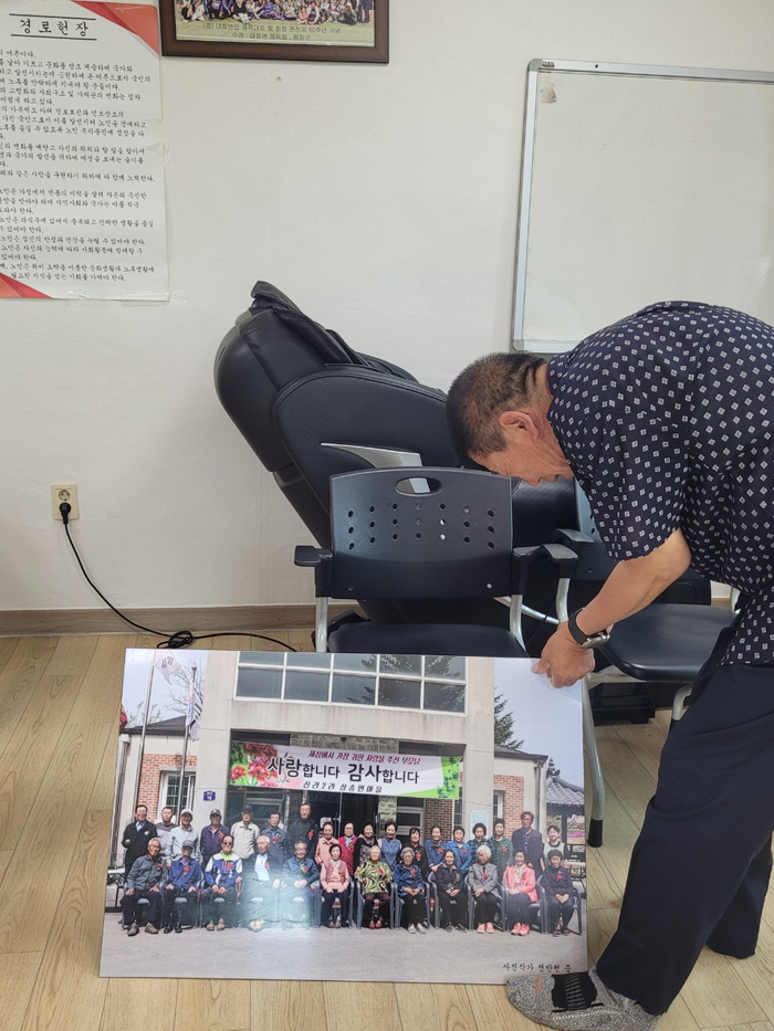 전 씨는 지난 25일 대화면 신2리와 대화3리 경로당을 직접 방문하여 어버이날 촬영한 단체 사진을 액자로 제작해 전달했다.