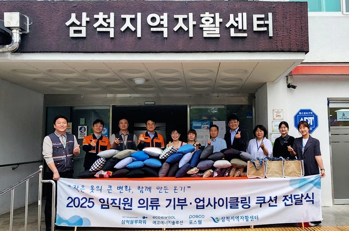 삼척블루파워 임직원들은 에코에너지솔루션㈜, 포스웰과 함께 입지 않는 의류와 쌀 포대 등을 자발적으로 기부하였으며, 물품은 삼척지역자활센터 자활근로 참여자들의 손을 거쳐 쿠션으로 업사이클링(새활용)되었다.
