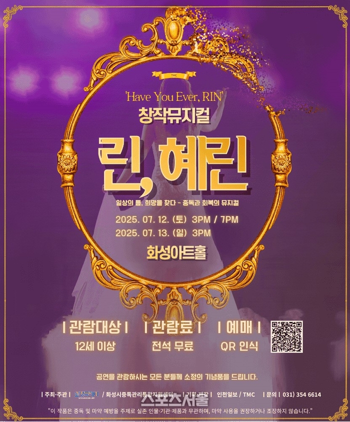 -창작뮤지컬 ‘린, 혜린’로 만나는 마약 예방 메시지...7월12~13일 화성아트홀서 무료 공연