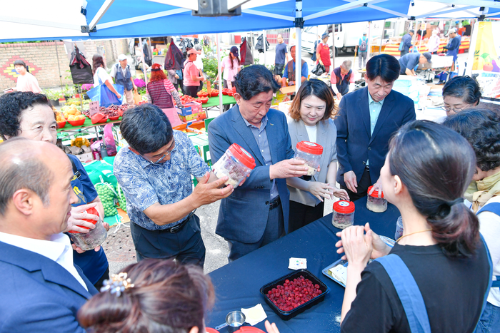 협의회는 지역 여성농업인이 직접 생산한 싱싱한 농특산물을 저렴하게 판매하고, 방문객을 위한 산딸기 청 담기 체험과 아나바다 장터도 마련했다.