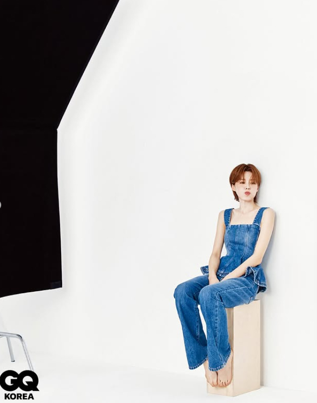 컬러 화보에서는 청청패션을 완벽하게 소화하며 맨발로 의자에 앉아 고혹적인 눈빛으로 카메라를 응시, 신비로운 분위기를 자아냈다.