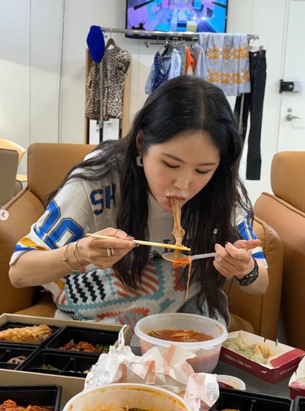 또 다른 사진에서는 촬영 후 편안한 분위기에서 식사에 집중하는 소탈한 모습이 담겼다. 맛있게 음식을 먹는 모습은 그의 “밥도 열심히 먹는다”는 말을 그대로 보여주며 일과 휴식 모두에 최선을 다하는 그의 긍정적인 에너지를 느끼게 한다.