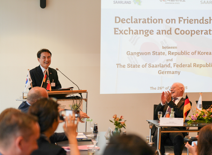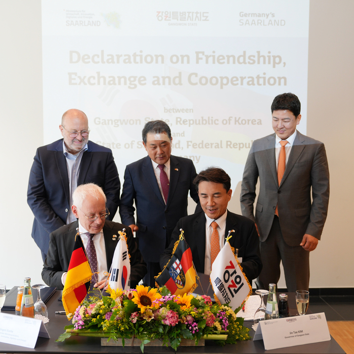 강원자치도는 이날 독일 잘란트주와 지속적 협력 관계 토대 구축을 위한 우호교류협정을 체결하고 경제, 통상, 혁신 및 기술 등 분야에서 교류를 추진하기로 약속했다.
