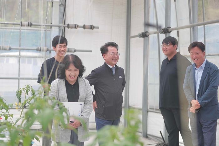 육 시장은 비닐하우스 내 스마트팜 시설을 직접 견학하며 “지속 가능한 농업의 핵심은 청년에게 있다”며 “도시농업과 스마트농업 분야에서 청년의 역할이 커질 수 있도록 지원을 아끼지 않겠다”고 밝혔다.