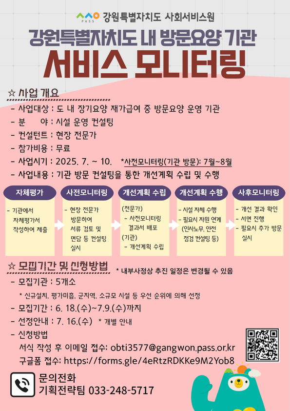 관련문의는 강원특별자치도 사회서비스원 기획전략팀( ☎ 033-248-5717)로 하면 된다.