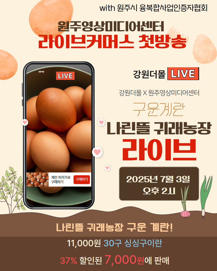 올해 첫 라이브커머스 방송에선 나린뜰 귀래농장에서 판매하는 구운계란을 시작으로 총 10회에 걸쳐 강원더몰 라이브채널을 송출된다.