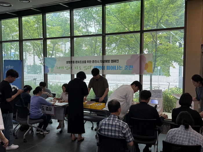 이번 행사는 춘천시정신건강복지센터와 춘천시중독관리통합지원센터가 공동으로 우울척도, 알코올 사용 등의 자가문진표 작성과 스트레스 검사기를 활용한 정신건강 측정, 검사 결과에 따른 맞춤형 상담을 진행했다.