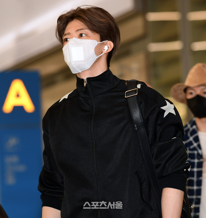 재민은 별 문양이 새겨진 트레이닝 복 차림으로 입국해 팬들의 눈길을 끌었다.