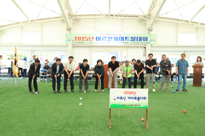 [스포츠서울ㅣ김기원기자]삼척시사회복지협의회(회장 김문호)가 지난 6월 29일 주관한 어르신 건강증진복지사업 ‘2025년 어르신게이트볼대회’가 총 27개 게이트볼팀과 자원봉사자들이 참여한 가운데 근덕면 게이트볼구장에서 성황리에 개최되었다.