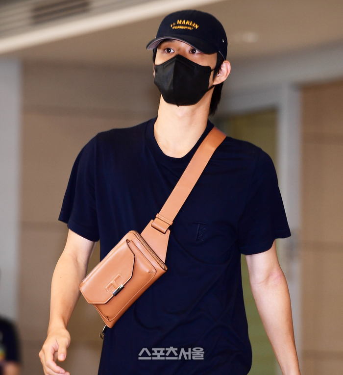 정우는 편안한 차림의 블랙 티셔츠와 미니 백을 걸치고 입국해 팬들의 눈길을 끌었다.