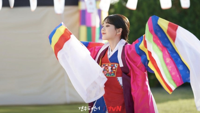 그녀는 운명적으로 죽음을 앞둔 첫사랑 견우(추영우 분)를 살리기 위해 굿을 하고 귀신과 대면한다. 전통 무속의 핵심 요소인 ‘천도’가 주인공의 동력으로 작용하는 셈이다.