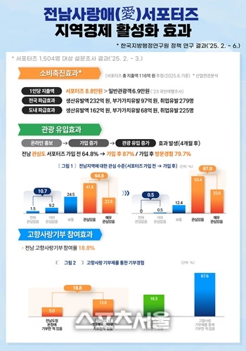 전남도에 따르면 한국지방행정연구원이 정책연구과제로 수행한 ‘서포터즈 성과분석 및 발전전략 수립 연구’를 분석한 결과 서포터즈의 경제적 파급효과와 전략적 가치가 실증적으로 확인됐다.