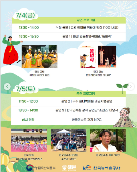 특히, 농촌 여름휴가 분위기 조성과 농촌관광 활성화를 위한 다양한 홍보 프로그램과 체험행사가 함께 진행된다.