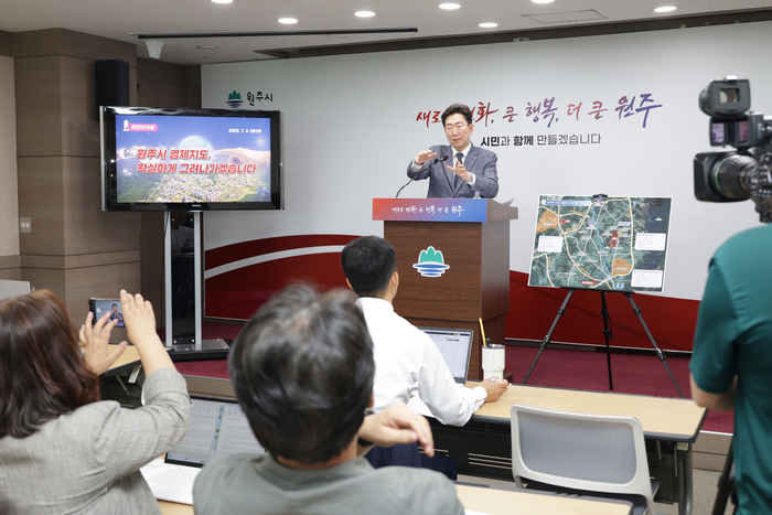[스포츠서울ㅣ원주=김기원기자]원강수 시장은 7월 3일 긴급 현안 브리핑을 통해 원주시 산업단지 조성 현황 및 확충 계획을 발표했다.