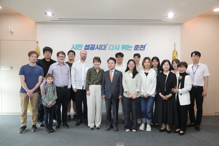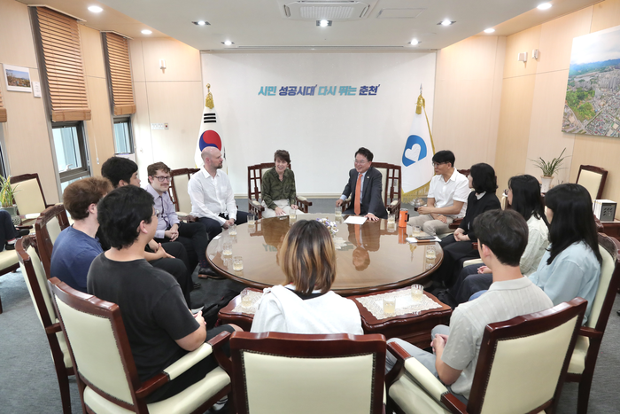 [스포츠서울ㅣ춘천=김기원기자]육동한 춘천시장이 5일 시청 접견실에서 춘천을 방문한 세인트존스대학 관계자들과 만나 면담을 가졌다. 이 자리에는 에밀리랭스턴 총장 선임고문, 나단 쉴즈 교수 등이 참석했다.