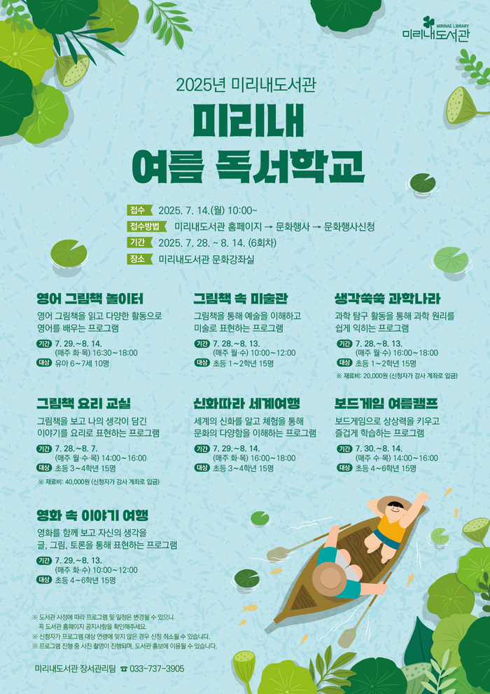 박순덕 도서관장은 “여름방학을 맞아 유아와 초등학생 어린이들이 도서관에서 제공하는 다양한 프로그램을 통해 폭넓은 사고와 창의력을 기르는 기회를 얻길 바란다”라고 전했다.