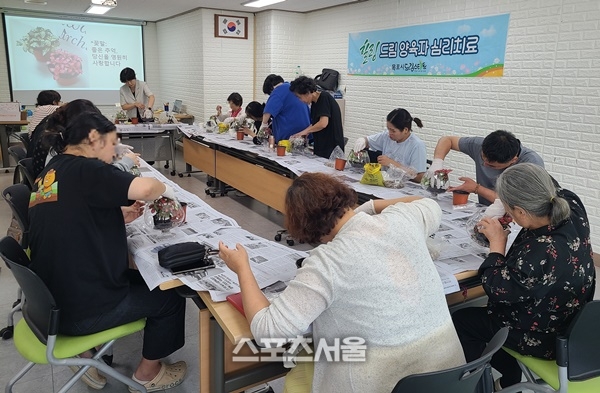 원예치료는 꽃 장식과 공기정화 식물 심기 등 자연과 교감하는 활동으로 진행되었으며, 다육식물을 이해하고 돌보는 과정, 투명 용기를 활용한 미니 정원 꾸미기 등 창의적인 체험도 병행되었다.