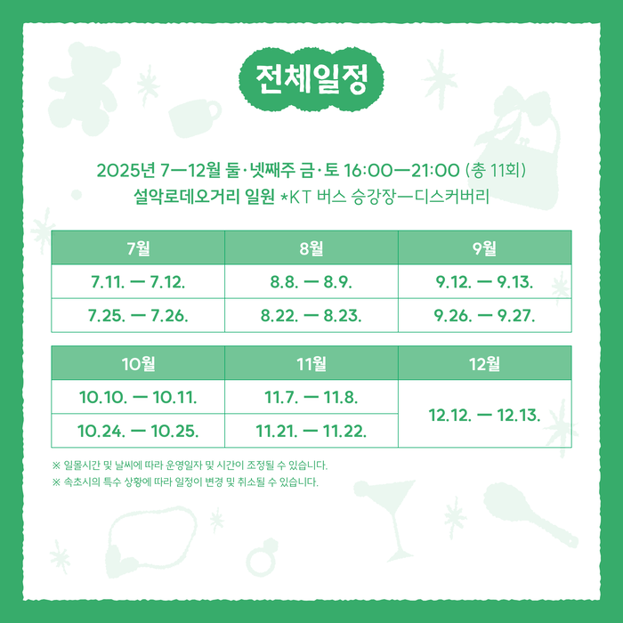 7월 11일부터 12월 13일까지 매월 둘·넷째 주 금, 토요일에 열려
