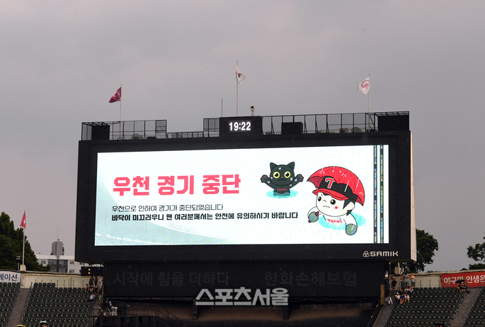 스포츠 | 야구 [포토]키움-LG 잠실경기, 우천 중단 입력2025-07-08 19:42:18 북마크 페이스북 트위터 SNS 더보기 가글자크기설정 인쇄 SNS 더보기 닫기 네이버밴드 네이버블로그 URL복사 글자크기 설정 메뉴 닫기 글자크기 설정 시 다른 기사의 본문도동일하게 적용됩니다. 가 가 가 가 가 8일 잠실구장에서 열린 2025 KBO리그 키움과 LG 경기가 4회초를 앞두고 우천으로 중단되고 있다. 2025. 7. 8.잠실 | 박진업 기자 upandup@sportsseoul.com 기사추천 0