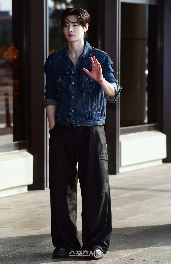 이날 성훈은 루즈핏의 블루 데님 재킷과 와이드핏의 블랙 카고팬츠로 매력을 발산해 공항에 마중나온 소녀팬들의 환호를 이끌어냈다.